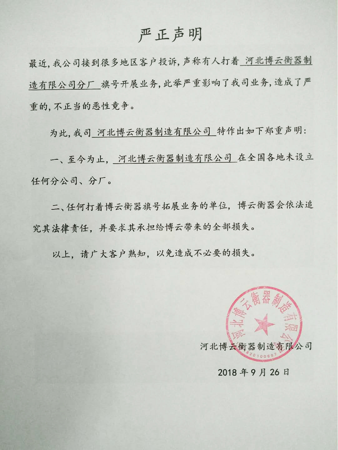 嚴正聲明